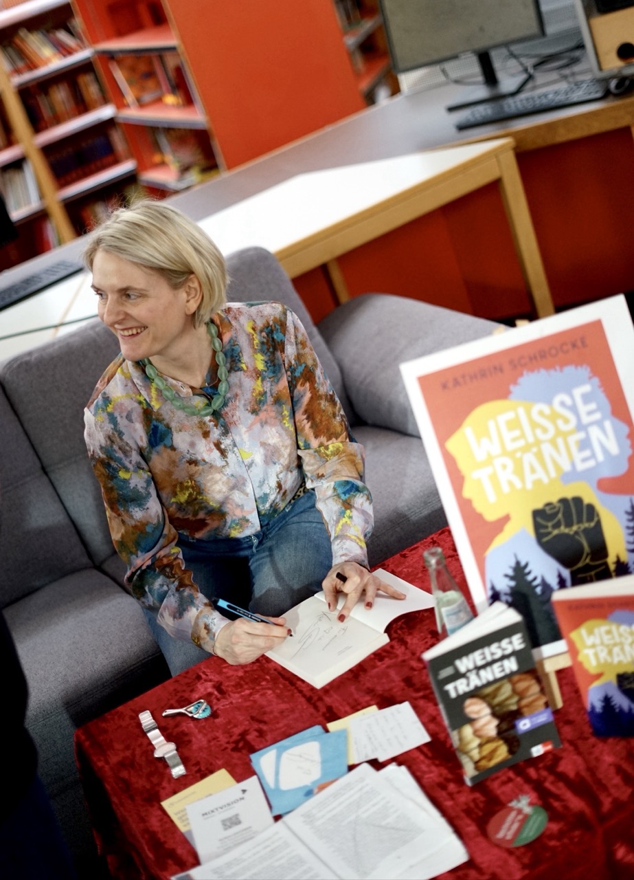 Die Schriftstellerin stellte dabei ihren Jugendroman „Weiße Tränen" vor und las ausgewählte Kapitel vor. Schülerinnen und Schüler des 7. und 8. Jahrgangs hatten zudem die Möglichkeit, mit der Autorin ins Gespräch zu kommen und persönliche Fragen zu stellen.