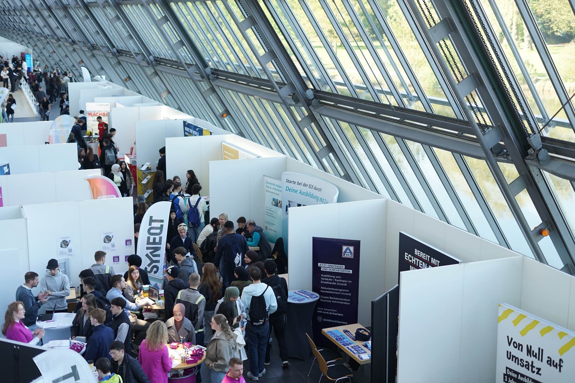 Besonders positiv an dieser Messe ist das Konzept der vorab vereinbarten Gesprächstermine. Die Schülerinnen und Schüler konnten sich nach einer Informationsveranstaltung im März, die von einem Projektmitarbeiter der Ausbildungsmesse und Maren Laskewitz (StuBo SII) durchgeführt wurde, mit unterstützendem Begleitmaterial gezielt auf ihre individuellen Gespräche vorbereiten und diese dann vor Ort mit Vertreterinnen und Vertretern aus Unternehmen, Hochschulen und Institutionen führen. Dabei zeigten viele von ihnen ein hohes Maß an Engagement, Interesse und Kommunikationsfähigkeit.
