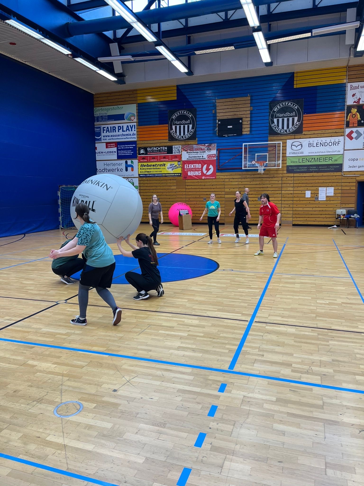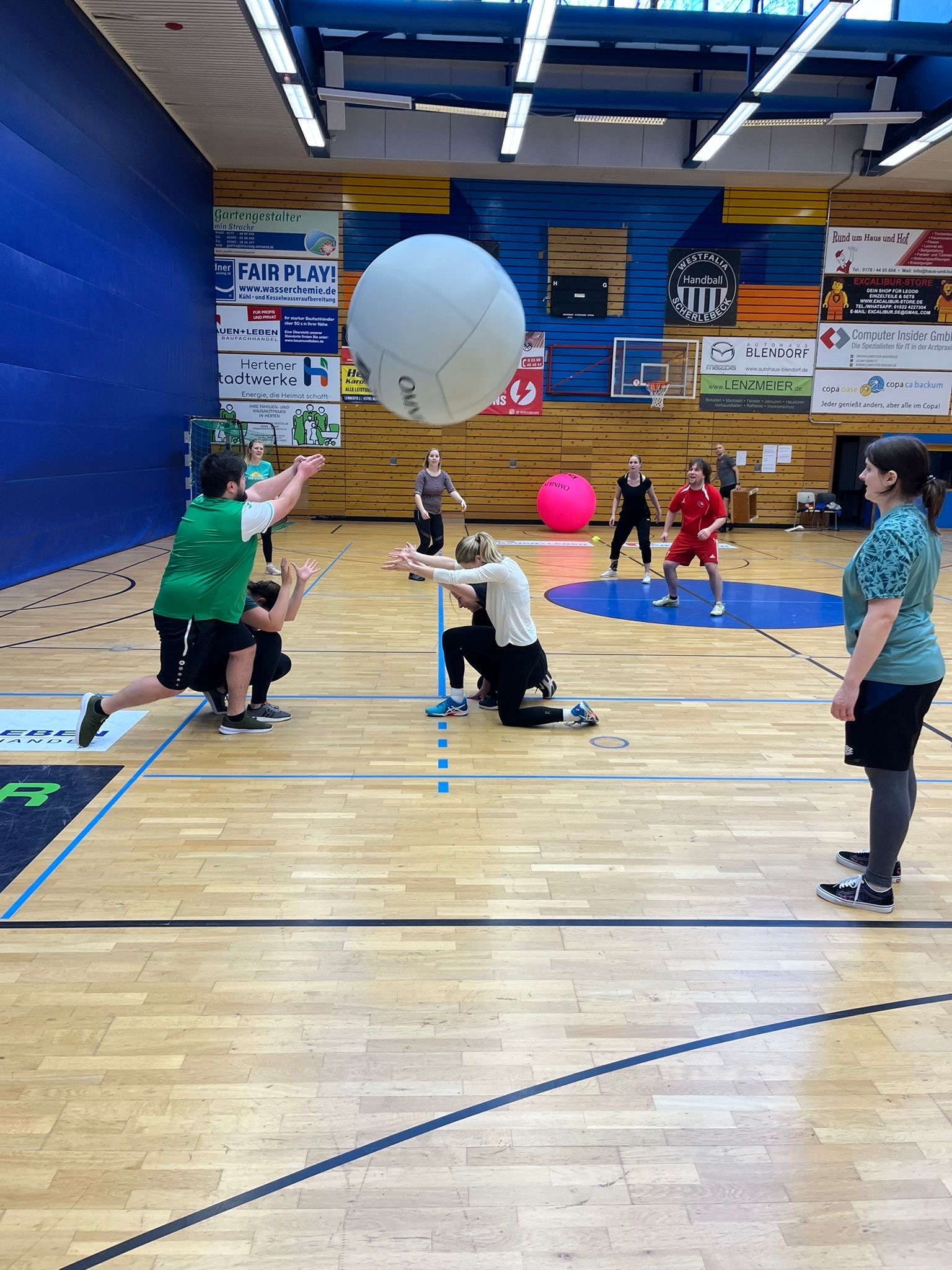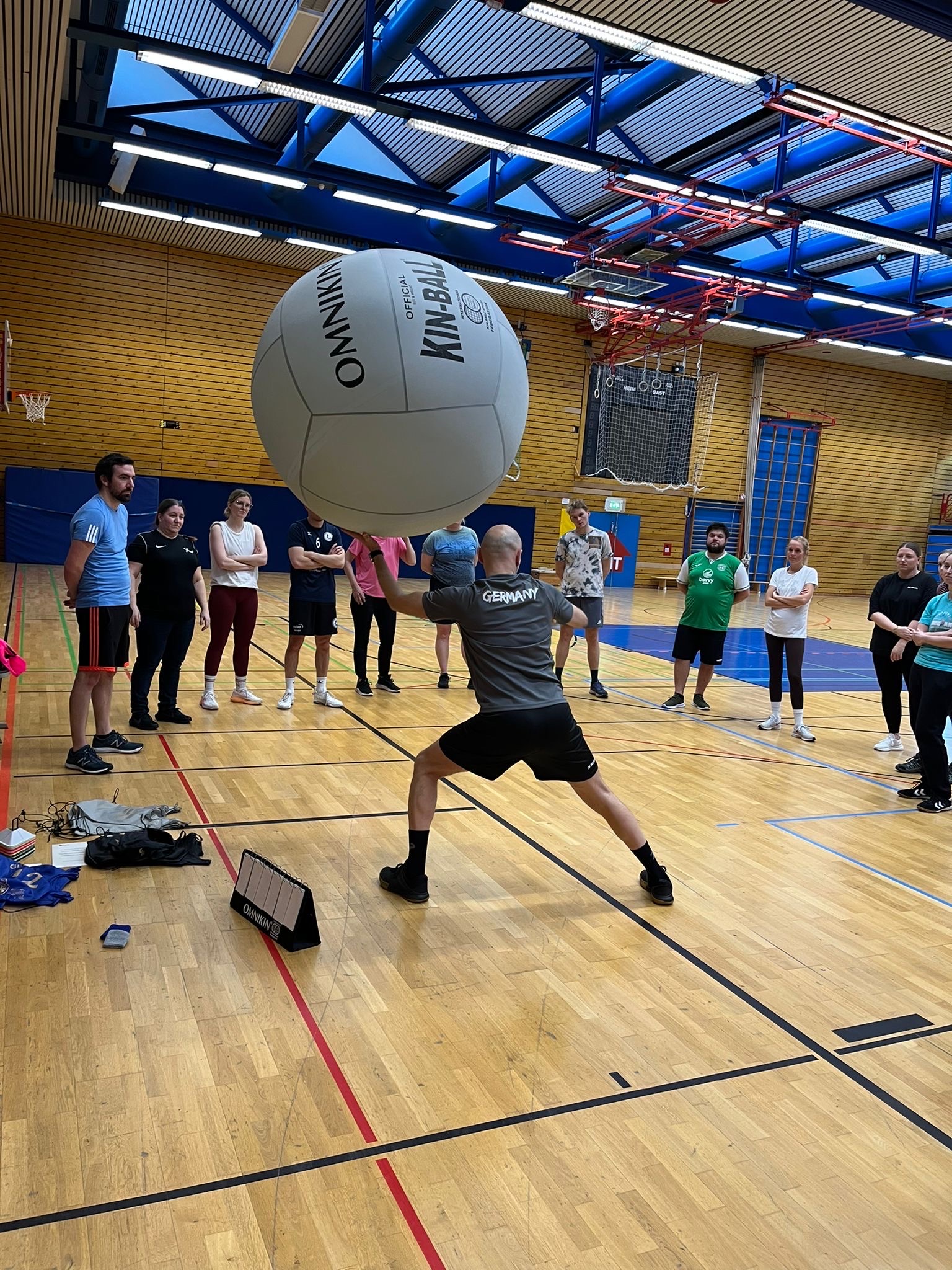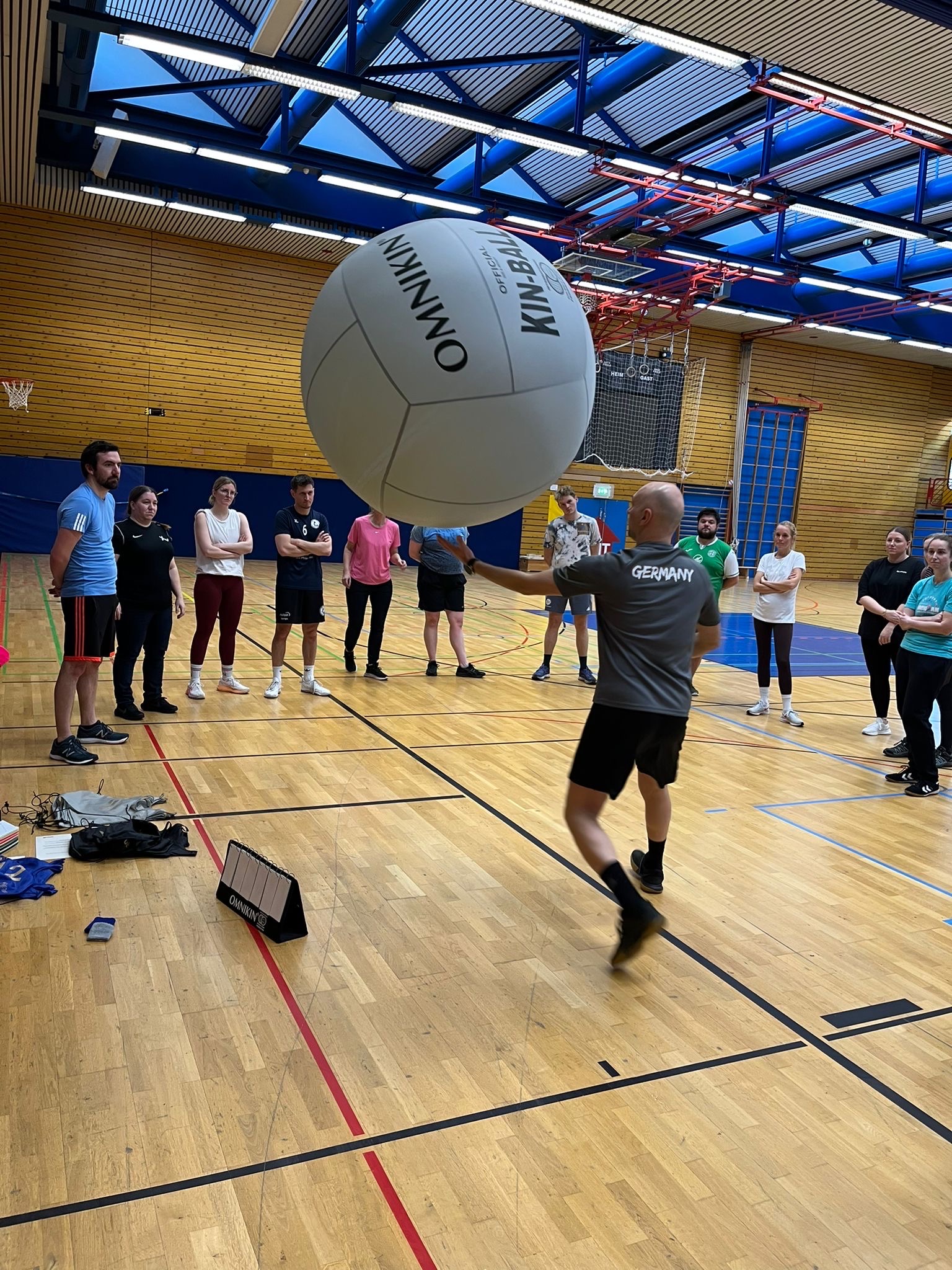 Rund 20 Lehrkräfte nahmen aktiv teil und erlebten eine Sportart, die gleichermaßen fordert und verbindet. Die Begeisterung war so groß, dass nun geplant ist, Kin-Ball perspektivisch im regulären Sportunterricht zu verankern. Darüber hinaus wird über regelmäßige sportliche Angebote für das Kollegium nachgedacht – als Beitrag zur Gesundheitsförderung und zur Stärkung der Schulgemeinschaft.